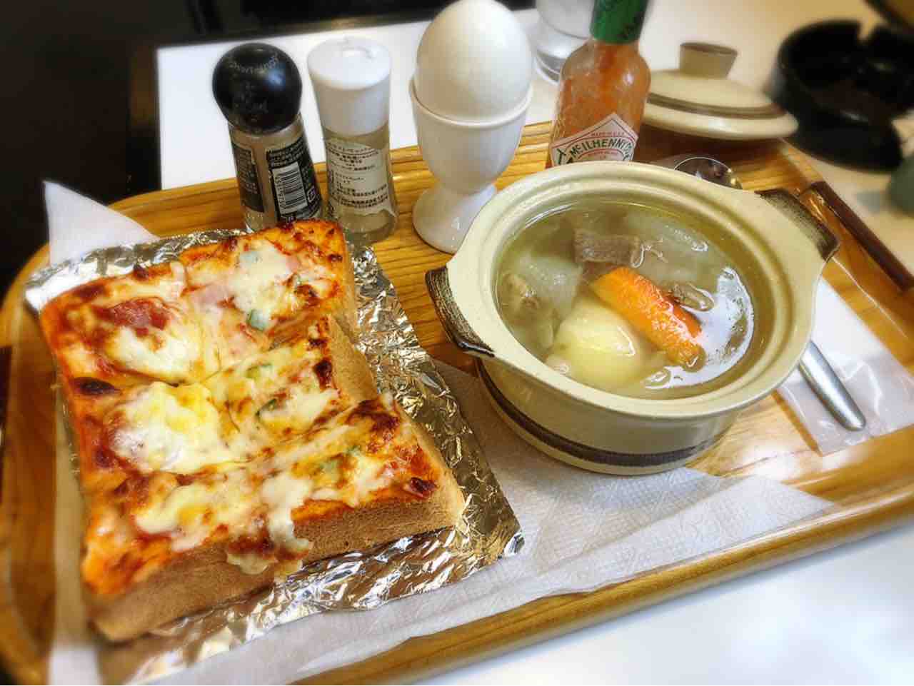 ピザトーストもスープも家庭的幸福を感じさせる。