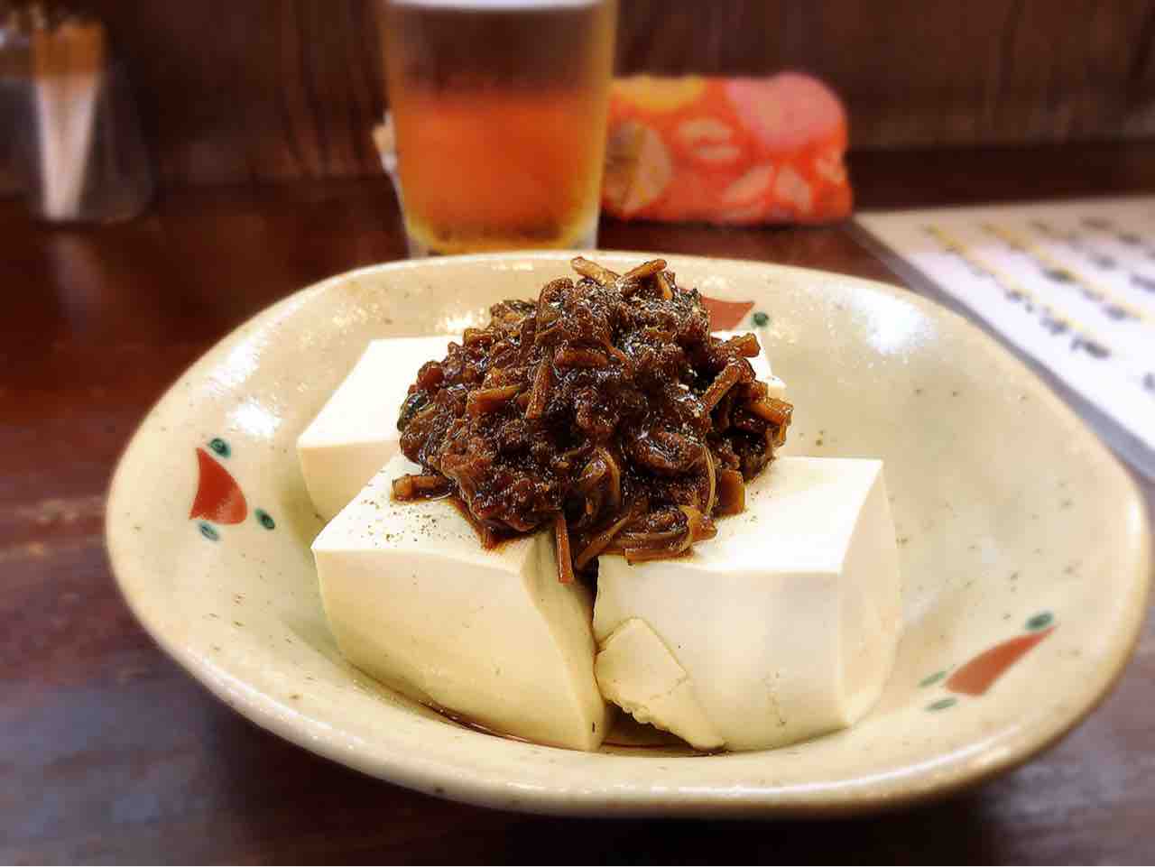 まずは酒のあてに「肉どうふ」をたのみビールを飲みながらコーチンを待つ。