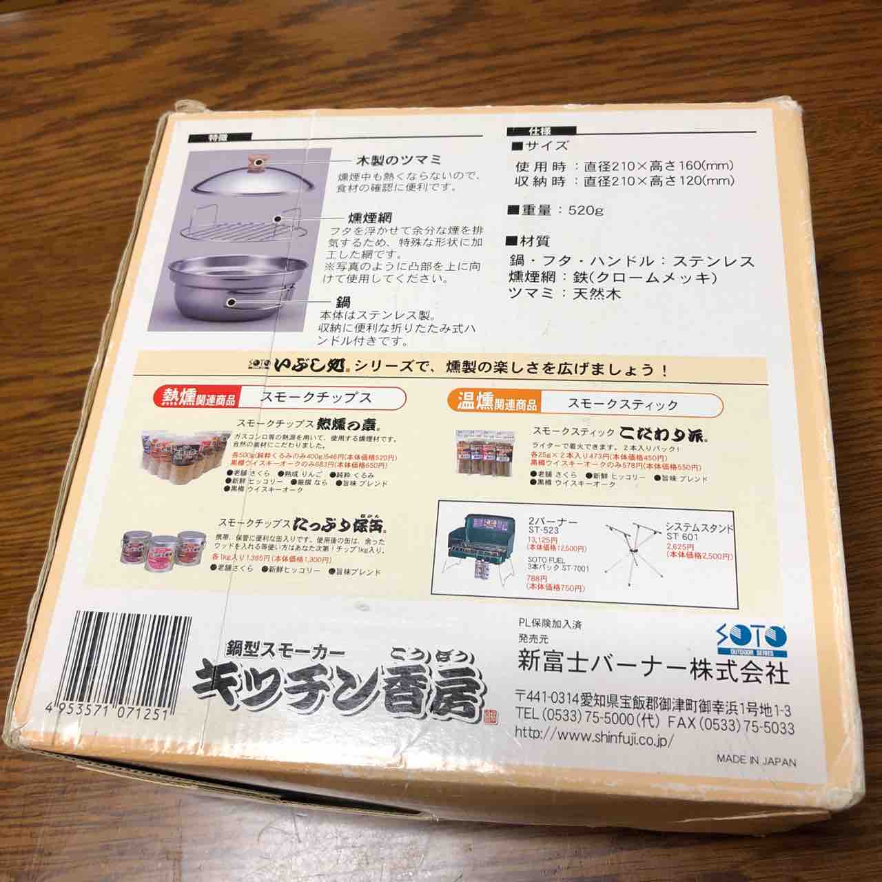 燻製器もチップも新富士バーナー「SOTO」です。チップはさくら。