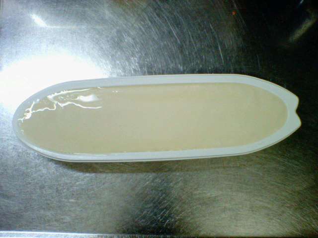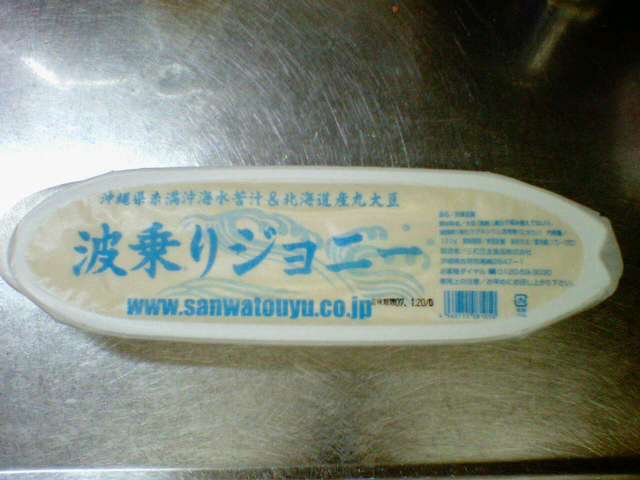 サーフボードのかたちでしょうか?全体に醤油をかけて、とにかくノーズのあたりからスプーンぶち込んで食べて見ました。名前は遊んでますが、以外にも豆の味が濃く味わえる、美味しい豆腐で気に入りました。