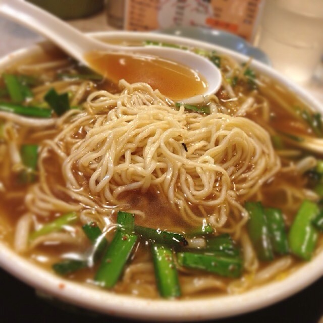 ここの は安い割には量多め。それでも濃いめの汁に、トッピングのチャーシューアクセントで難なく完食。