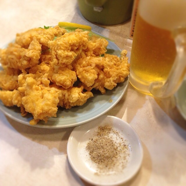 ゲソからはサクサクで中はフワフワ! 塩胡椒でビールのアテに最高です。