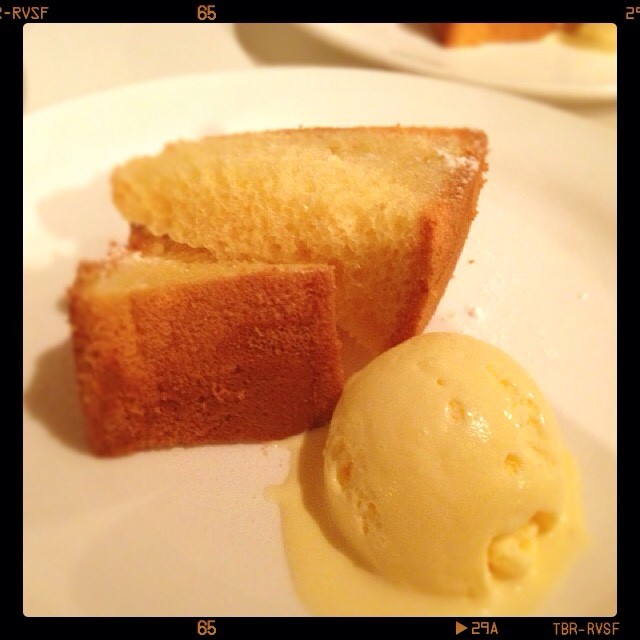 スイーツ初心者なので上手く伝えられないんですが、固めのケーキ(なんていうケーキだろ?)の上にはミントと苺。ピンクのソース(なんていうソースだろ?)が甘酸っぱくて私は好きです。